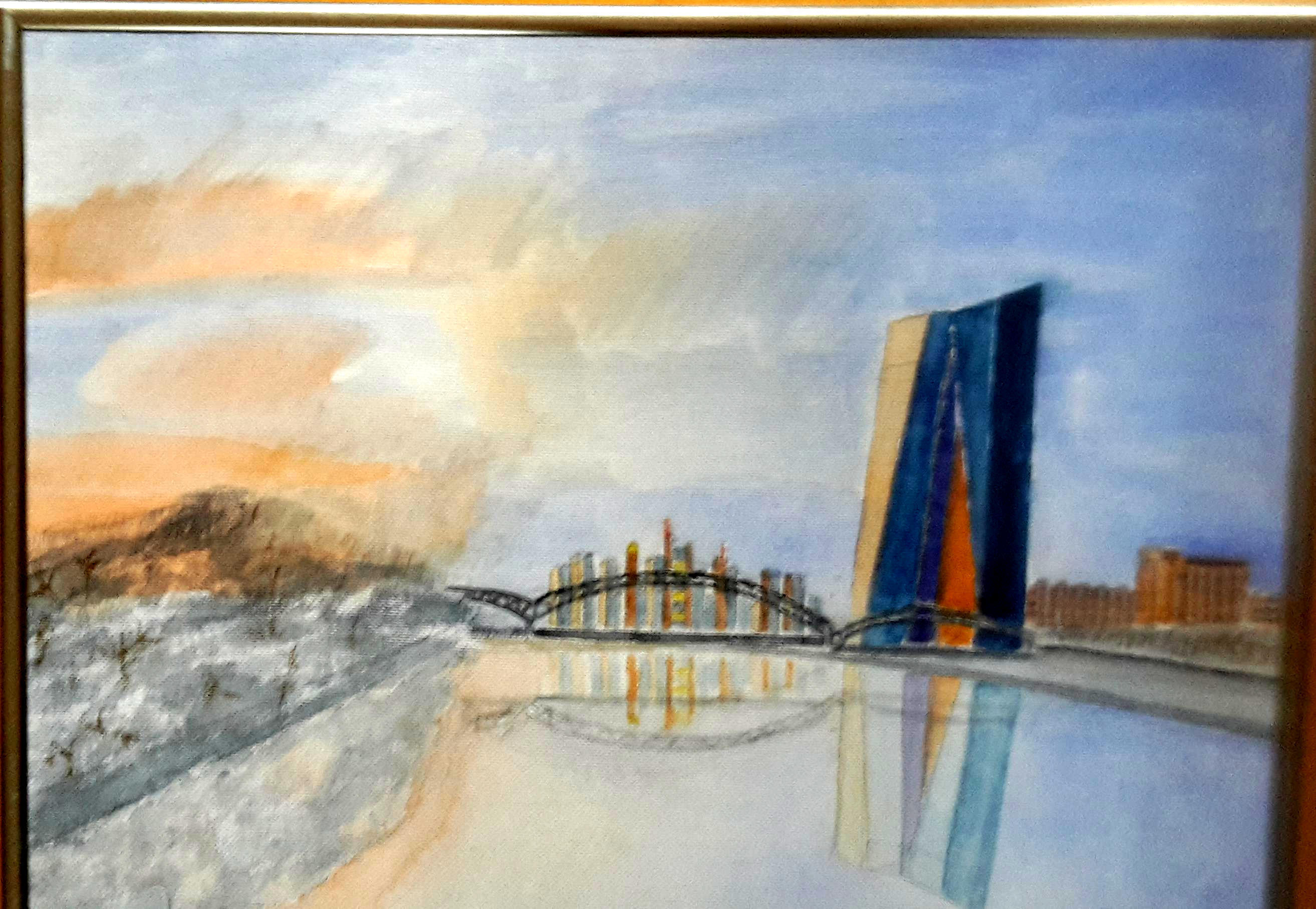 | Wohnen am Fluss Frankfurter Skyline 40 Acryl auf Leinwand 100x80 cm |