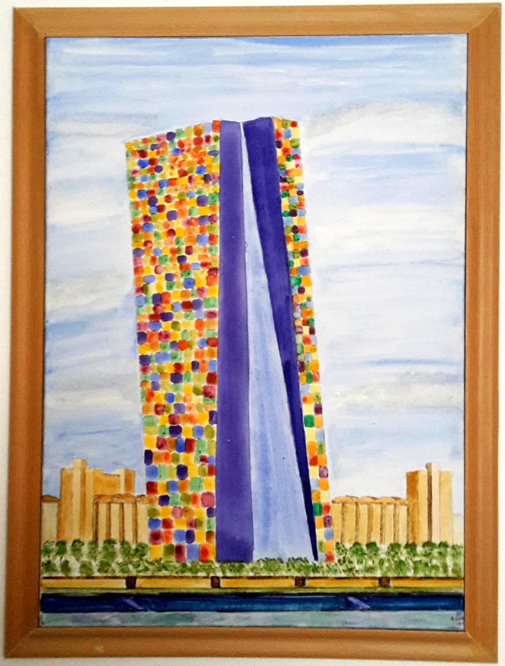 | Skyline Frankfurt EZB 11 Aquarell auf Leinwand 30x40 cm |