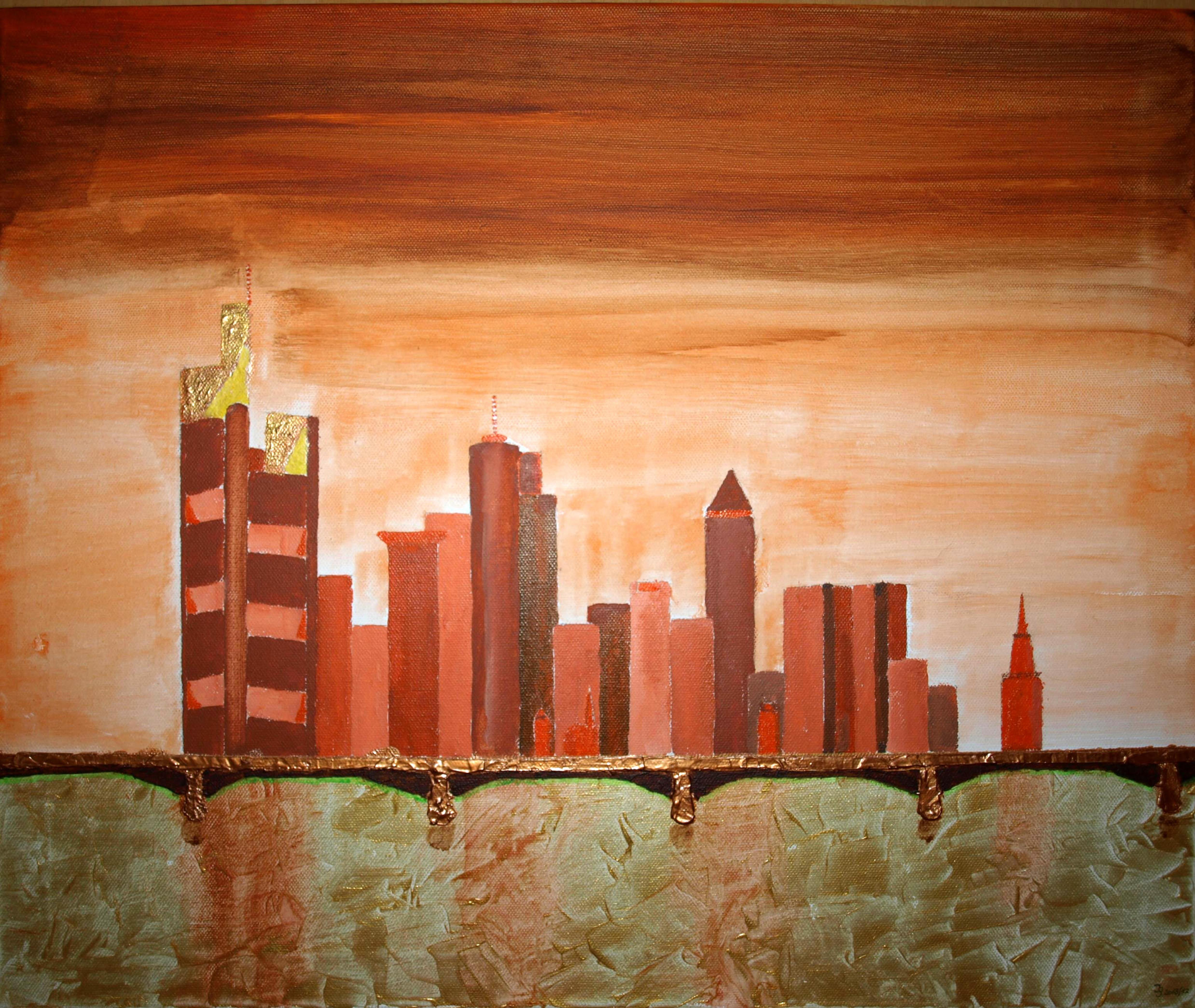 | Frankfurter skyline 37 (Spateltechnik) Acryl auf Leinwand 100x80 cm |